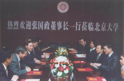 會(huì)談中,閔維方書(shū)記、許智宏校長(zhǎng)向張國(guó)政先生介紹了近年來(lái)北京大學(xué)的發(fā)展?fàn)顩r。張先生饒有興趣地聽(tīng)取介紹,對(duì)北京大學(xué)近年來(lái)取得的成就表示由衷地贊嘆。