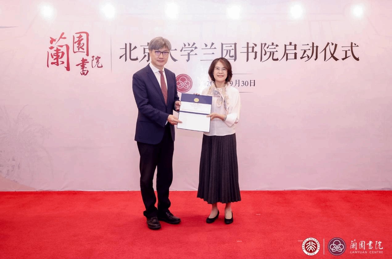 蘭園書(shū)院首任院長(zhǎng)由北京大學(xué)臨床腫瘤學(xué)院教授、美國(guó)醫(yī)學(xué)科學(xué)院外籍院士柯楊擔(dān)任,王博為柯楊頒發(fā)了院長(zhǎng)聘任證書(shū)。