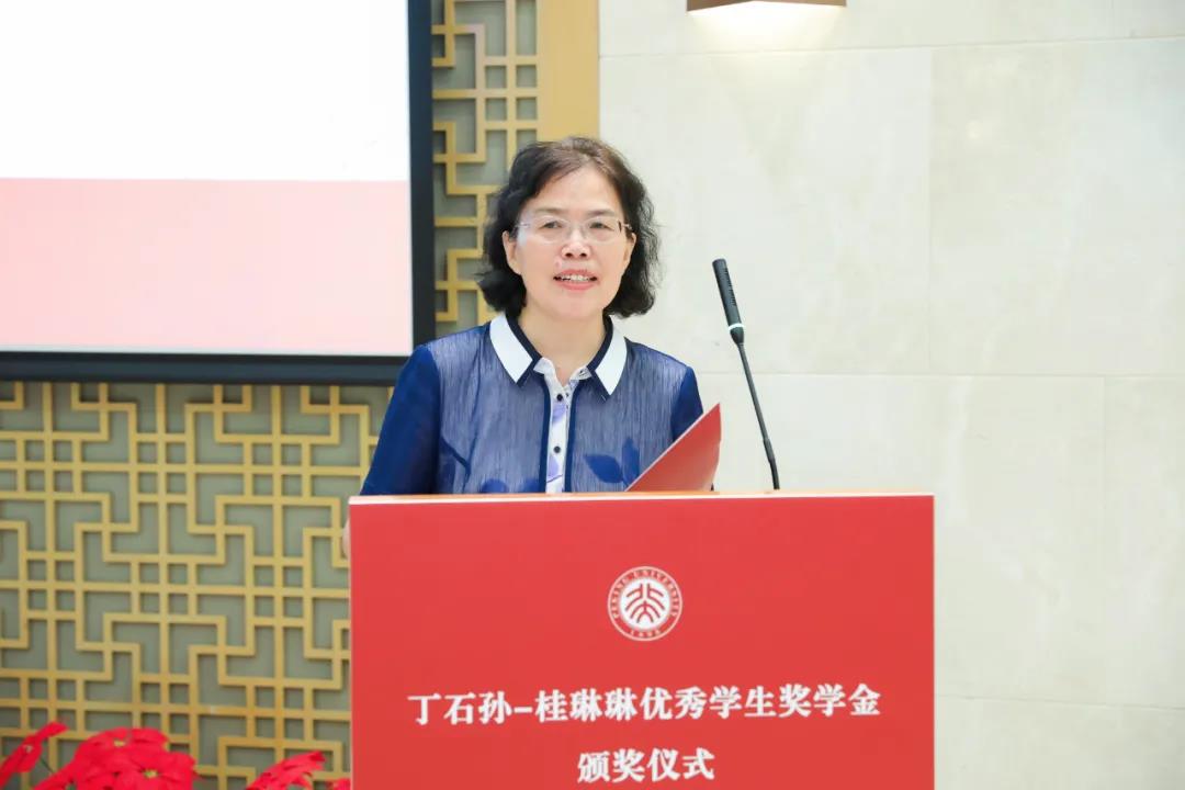 王穎霞回顧了丁石孫先生的教學(xué)改革理念和桂琳琳教授當(dāng)年的授課場(chǎng)景。她表示,學(xué)好基礎(chǔ)課是丁先生和桂教授一貫的教育理念,為此傾注了大量心血,他們對(duì)師生的關(guān)愛強(qiáng)化了北大的凝聚精神,影響著一代代北大學(xué)子。她指出,此項(xiàng)獎(jiǎng)學(xué)金是化學(xué)學(xué)院唯一一項(xiàng)完全針對(duì)本科基礎(chǔ)核心課程的獎(jiǎng)學(xué)金,與學(xué)院推行的本科生培養(yǎng)模式深切契合。她相信,在丁先生伉儷的精神鼓舞下,在此項(xiàng)獎(jiǎng)學(xué)金的激勵(lì)下,獲獎(jiǎng)學(xué)生將繼續(xù)奮發(fā)向上,攀登科學(xué)高峰,為中國(guó)化學(xué)高等教育和科學(xué)研究貢獻(xiàn)力量。