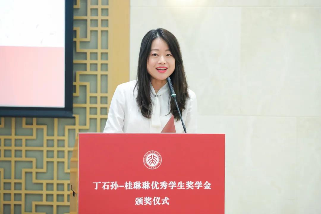 9月23日,北京大學(xué)丁石孫-桂琳琳優(yōu)秀學(xué)生獎(jiǎng)學(xué)金首屆頒獎(jiǎng)儀式在北京大學(xué)教育基金會(huì)北大之友報(bào)告廳舉行。丁干校友,北京大學(xué)數(shù)學(xué)科學(xué)學(xué)院黨委副書記董子靜,化學(xué)與分子工程學(xué)院副院長(zhǎng)王穎霞,教育基金會(huì)副秘書長(zhǎng)耿姝,數(shù)學(xué)科學(xué)學(xué)院、化學(xué)與分子工程學(xué)院獲獎(jiǎng)學(xué)生代表等共同出席儀式。