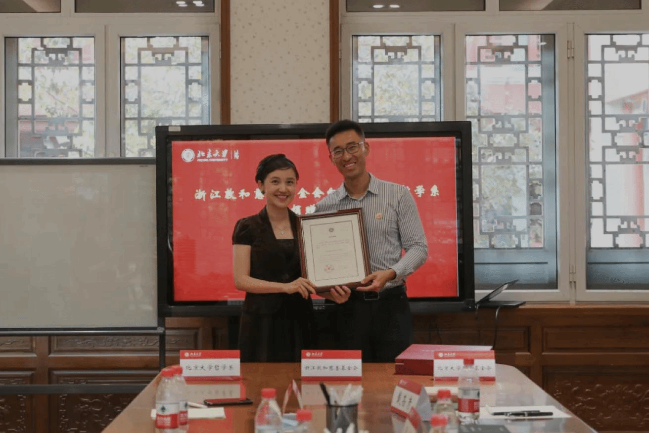 在全場(chǎng)熱烈的掌聲中,曹玉騫、仰海峰、耿姝共同簽署捐贈(zèng)協(xié)議。耿姝向敦和基金會(huì)頒發(fā)感謝狀,束鴻俊贈(zèng)送紀(jì)念品。