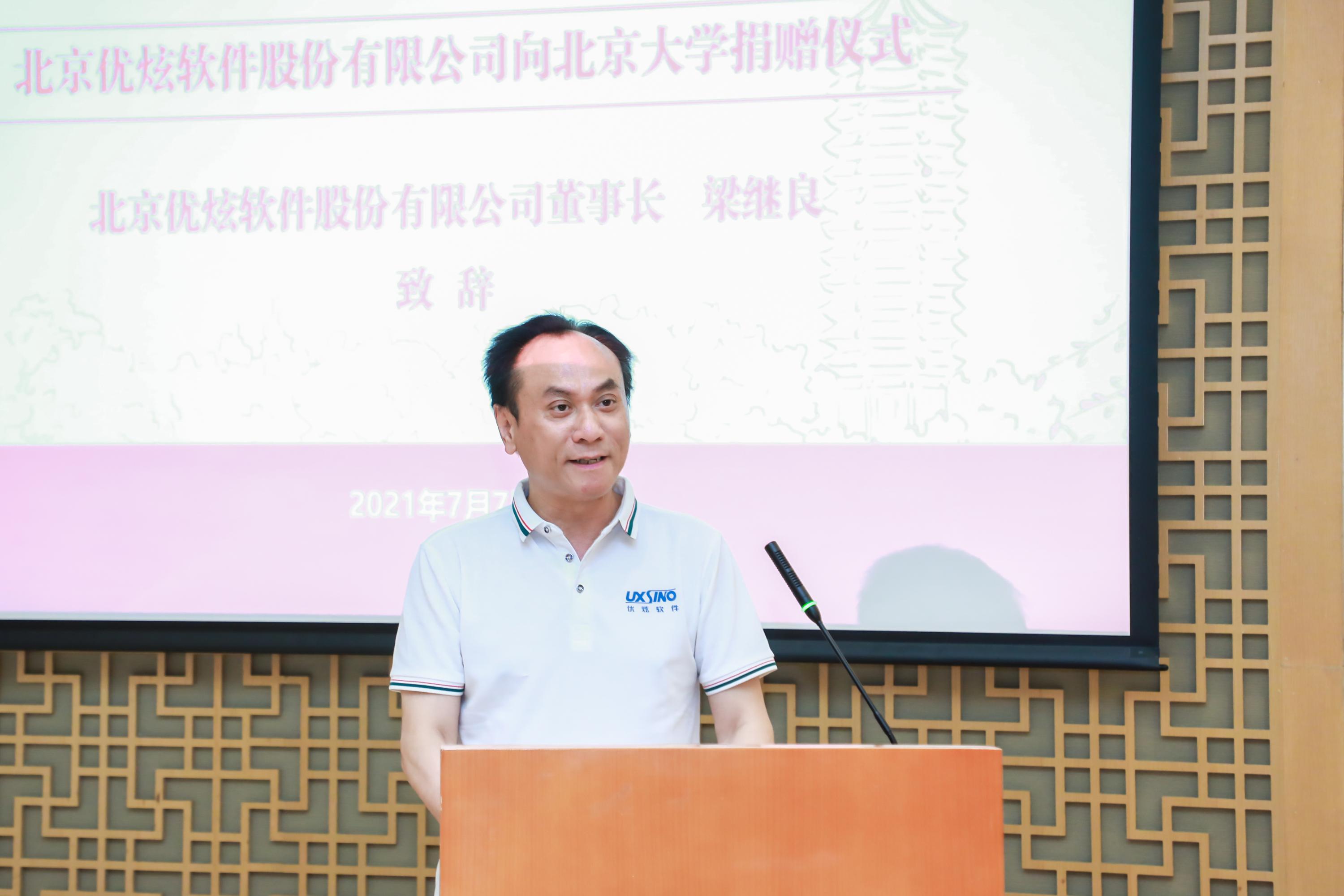 梁繼良講述了自己的家族與北大之緣和創(chuàng)業(yè)的逐夢之旅。他表示,北大對自己影響深遠(yuǎn),是自己創(chuàng)業(yè)時的支撐力量,雖然畢業(yè)20多年他仍然懷念母校,出走半生仍保留少年時的赤子之心。他指出,優(yōu)炫軟件希望解決數(shù)據(jù)庫“卡脖子”工程,堅持科技創(chuàng)新,立志讓中國人用上自己的數(shù)據(jù)庫。此次捐贈,優(yōu)炫軟件開啟了與北大的新篇章,希望今后能為母校做出更多貢獻(xiàn),持續(xù)為北大的教育事業(yè)發(fā)展提供新動能。