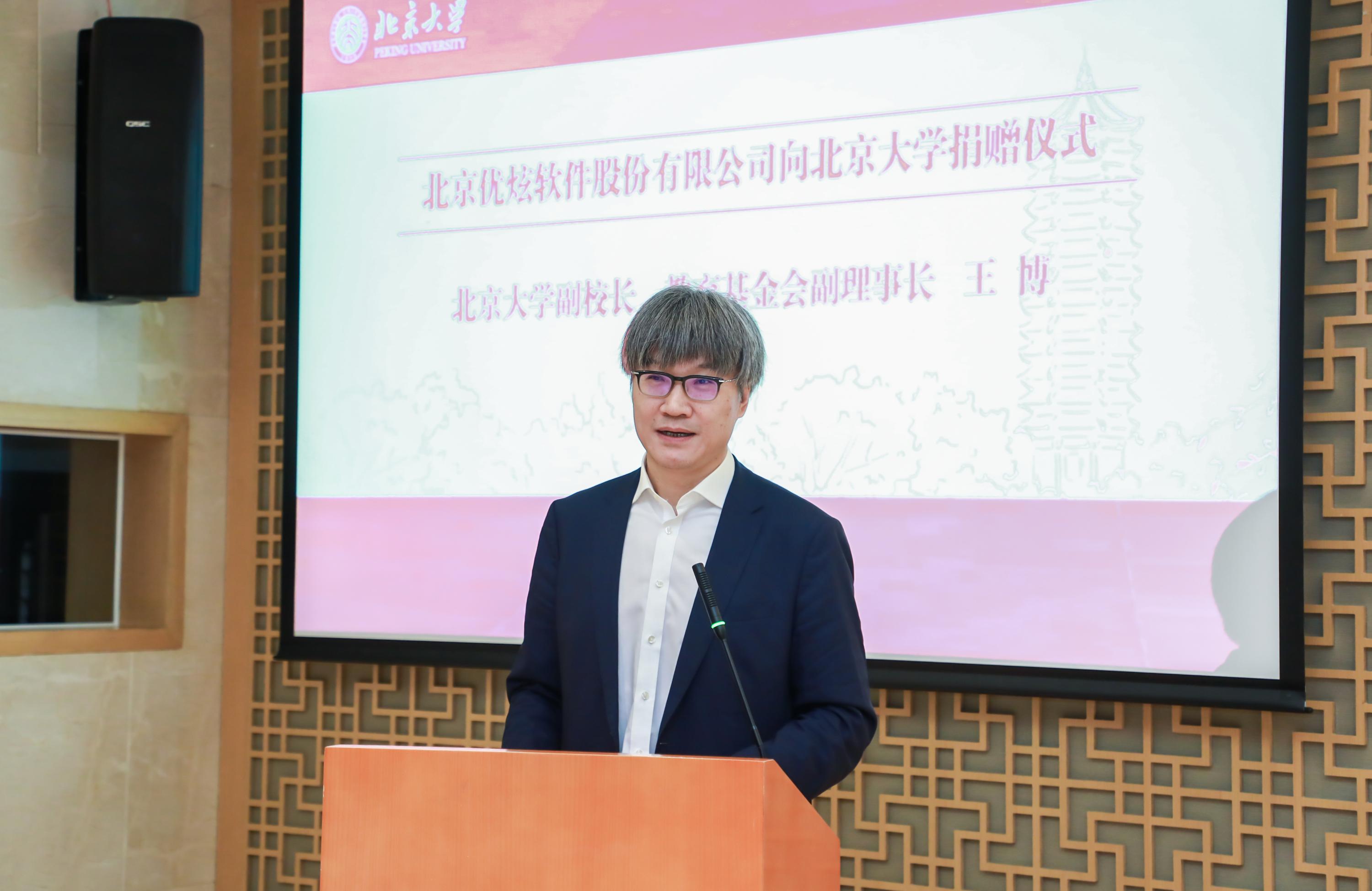 北京優(yōu)炫軟件股份有限公司董事長梁繼良校友攜家人及公司高管,王濤、耿德紅、鄒銳等嘉賓,北京大學(xué)副校長、教育基金會副理事長王博,體育教研部主任錢俊偉,校友工作辦公室副主任張向英,教育基金會秘書長李宇寧、副秘書長耿姝等共同出席。北京大學(xué)校友工作辦公室主任李文勝主持儀式。