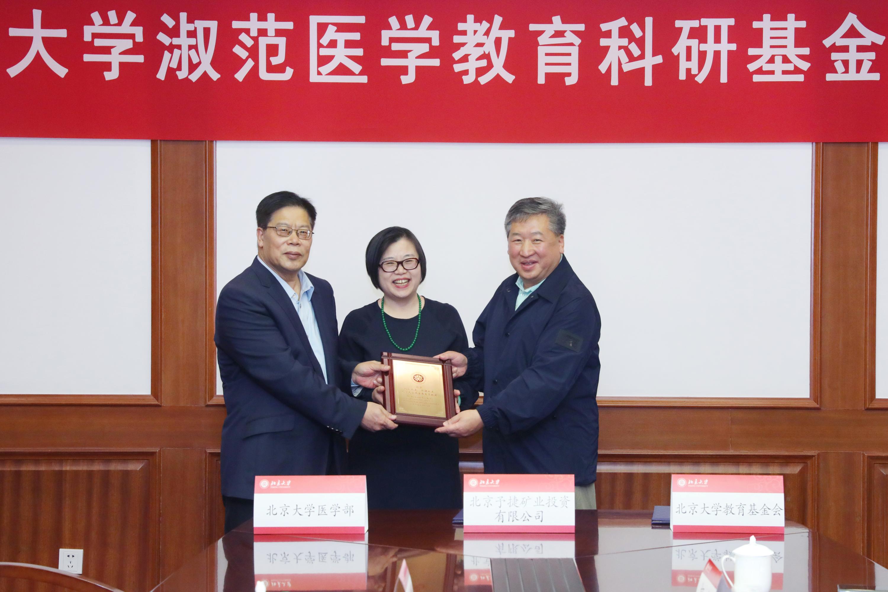12月6日,在北大醫(yī)學(xué)即將迎來110周年慶典之際,北京予捷礦業(yè)投資有限公司捐資繼續(xù)支持北京大學(xué)淑范醫(yī)學(xué)教育科研基金,支持北大醫(yī)學(xué)部各項事業(yè)的發(fā)展建設(shè),同時捐資設(shè)立前沿交叉學(xué)科研究院淑范醫(yī)學(xué)人文建設(shè)項目,支持科學(xué)技術(shù)與醫(yī)學(xué)史系的學(xué)科建設(shè)。這是胡毅、許捷校友伉儷在北大百年校慶之際設(shè)立淑范教育科研基金之后,再次為母校慷慨捐資。