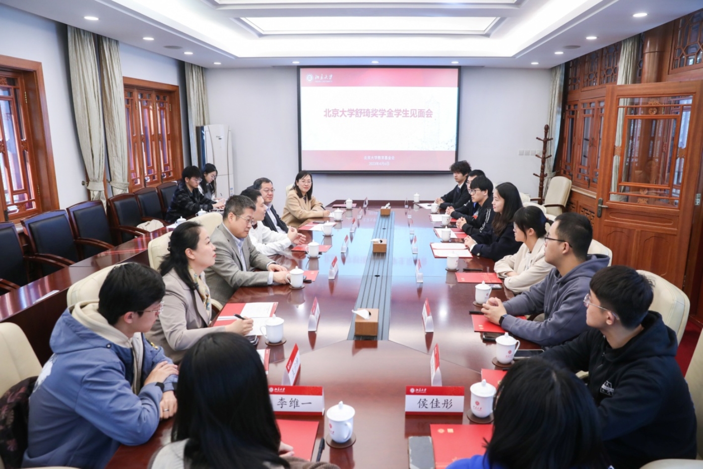 捐贈(zèng)儀式前,北京大學(xué)黨委書記、教育基金會(huì)理事長(zhǎng)郝平會(huì)見(jiàn)了舒琦。他感謝舒琦近年來(lái)默默地對(duì)母校人才培養(yǎng)和科學(xué)研究事業(yè)的支持,為年輕校友回饋母校的熱忱之心表示感動(dòng)。郝平表示,希望舒琦繼續(xù)關(guān)注母校,積極建言獻(xiàn)策,為母校的發(fā)展而共同努力。