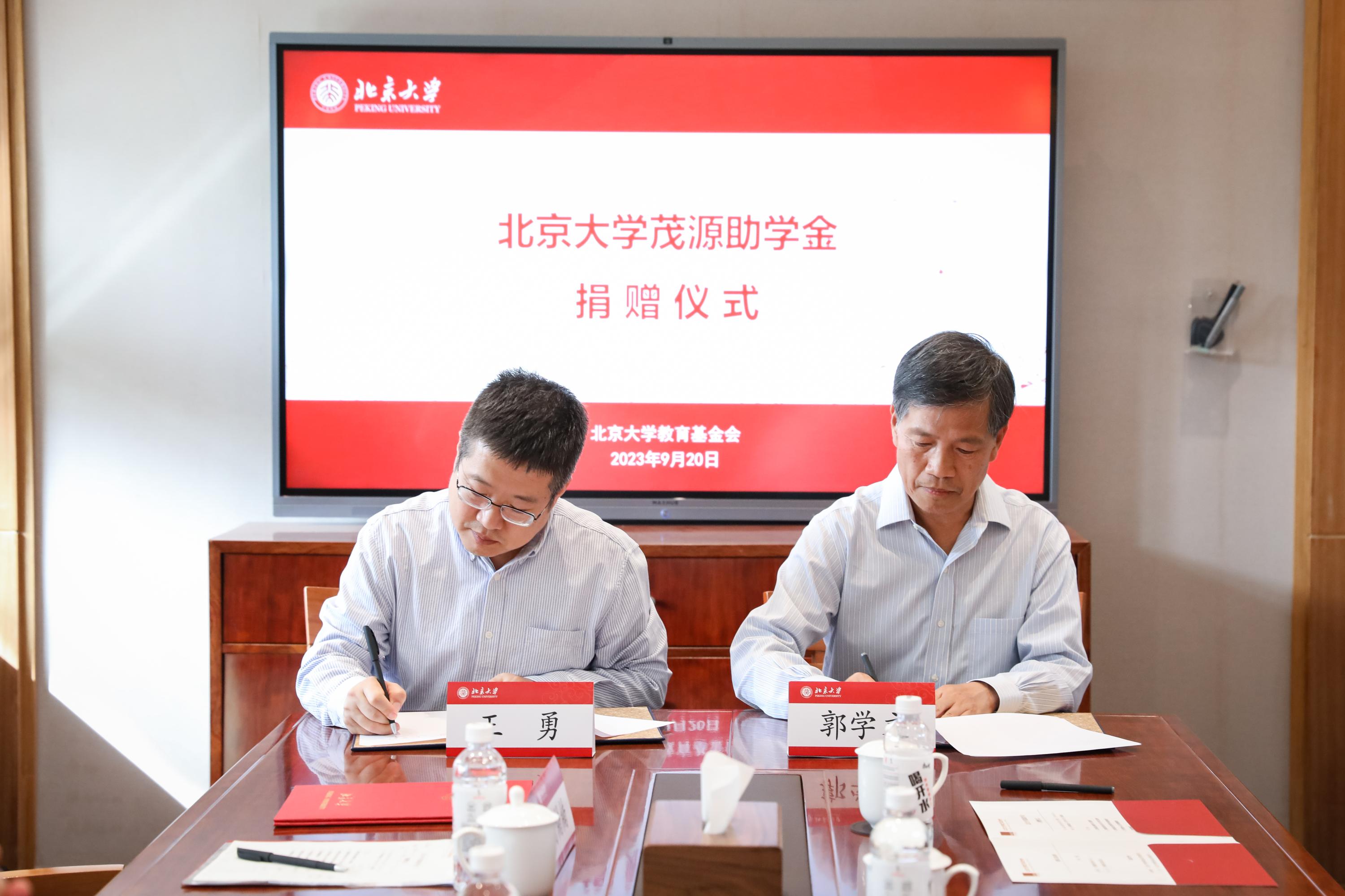 2023年9月20日下午,北京大學(xué)“茂源助學(xué)金”捐贈儀式在北京大學(xué)教育基金會舉行。茂源量化創(chuàng)始人兼CEO郭學(xué)文、茂源量化渠道總監(jiān)孫航、北京大學(xué)教育基金會副秘書長王勇、教育基金會首席投資官孫波彬、北京大學(xué)學(xué)生資助中心主任劉海驊共同出席捐贈儀式。