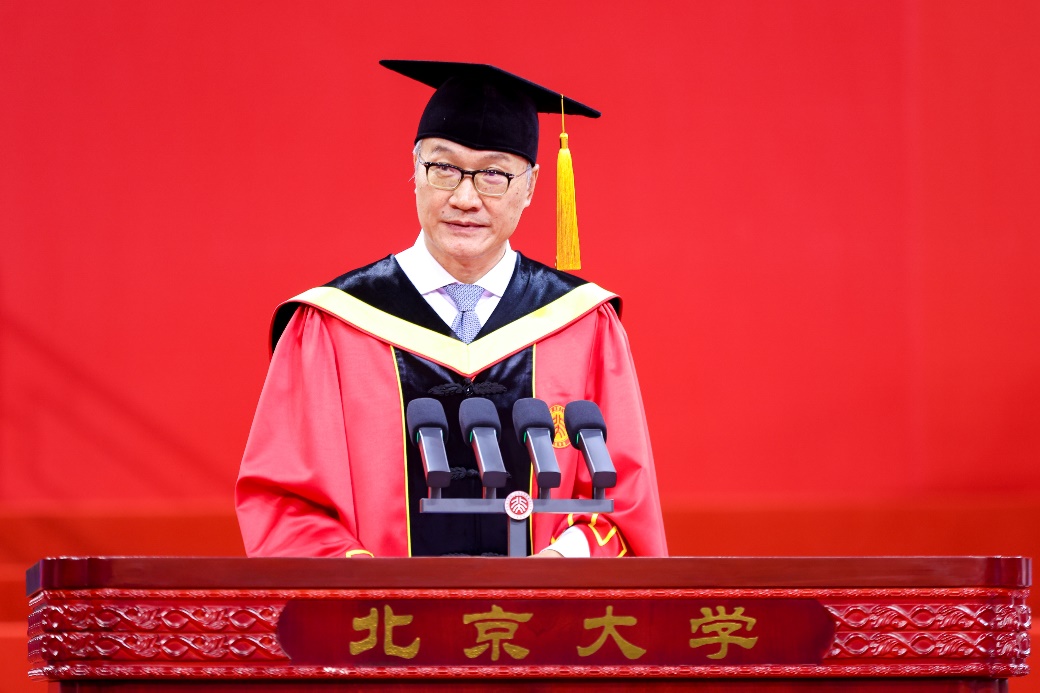 龔旗煌向畢業(yè)生們提出三點(diǎn)期望:打牢基礎(chǔ),涵養(yǎng)創(chuàng)新源泉,用探索精神和創(chuàng)新活力為國(guó)家發(fā)展塑造新動(dòng)能新優(yōu)勢(shì);跨界融通,拓展前行道路,以多元立體視角審視時(shí)代課題;追求卓越,勇攀人生高峰,不懼挑戰(zhàn),升華自我。他希望,同學(xué)們勇做走在時(shí)代前列的北大人,擔(dān)負(fù)起強(qiáng)國(guó)建設(shè)的歷史重任,書(shū)寫(xiě)無(wú)愧于時(shí)代的壯麗篇章。