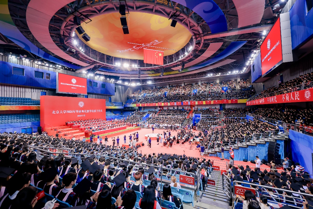 7月2日上午,北京大學(xué)2024年本科生畢業(yè)典禮暨學(xué)位授予儀式在邱德拔體育館舉行。
