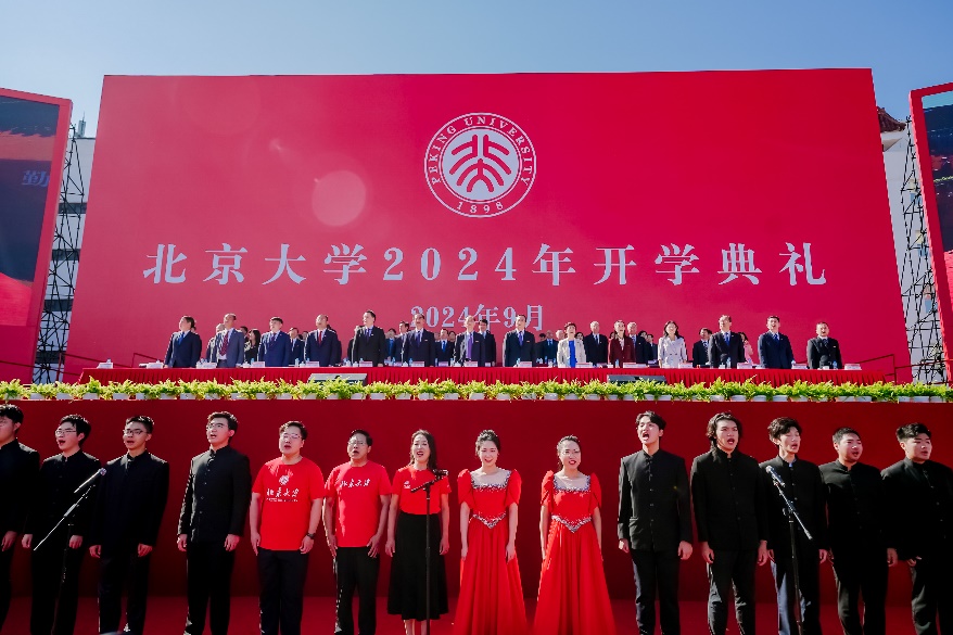 全體起立,奏唱國(guó)歌,升旗儀式結(jié)束后,北京大學(xué)2024年開(kāi)學(xué)典禮正式開(kāi)始。