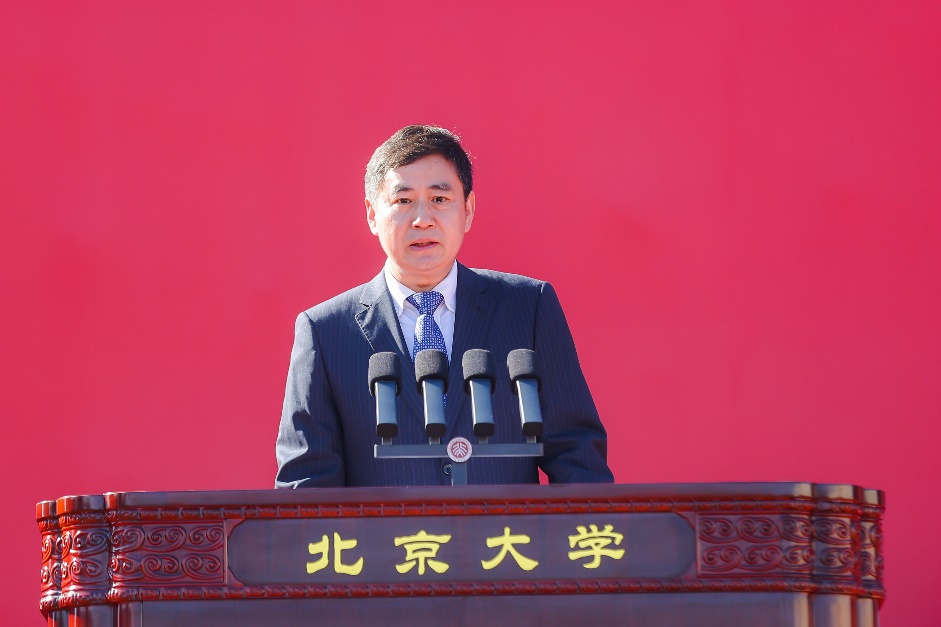 教師代表、化學(xué)與分子工程學(xué)院黨委書(shū)記裴堅(jiān)教授深情回憶起自己的大學(xué)生活,他認(rèn)為,北大人的標(biāo)志是獨(dú)立思考的能力、對(duì)個(gè)性的探索、對(duì)人性平等的尊重和維護(hù),是“眼底未名水,胸中黃河月”。“在北大最重要的事情,是完善自我,實(shí)現(xiàn)自己成長(zhǎng)的過(guò)程。”他希望大家找到自洽的方式,找到熱愛(ài)和擅長(zhǎng)的事情,找到能為之從事的、對(duì)社會(huì)有用的事業(yè)。這個(gè)園子能給大家的,不僅有立身處世的本領(lǐng),更有辯證看世界的能力、寬廣的視野、堅(jiān)定的信念。“我想,這些足以幫助大家坦然地面對(duì)自己的人生,成為這個(gè)社會(huì)的脊梁。”