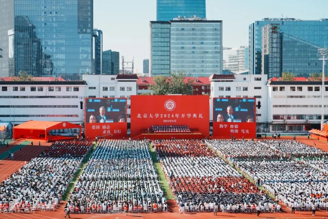 親愛的同學們、老師們、來賓們:大家上午好!今天,我們隆重舉行北京大學2024年開學典禮,熱烈歡迎4408名本科新生、6936名碩士新生、3867名博士新生,以及來自109個國家的1741名留學生同學進入北大!首先,我代表學校,祝賀大家開啟人生新的篇章!同學們,從現(xiàn)在起,“北大人”這個光榮稱號將伴隨大家一生,你們將肩負起服務國家、造福世界的責任。正如中文系謝冕先生所說,“今日的精英與明日的棟梁,今日的思考與明日的奉獻,被無形的力量維系在一起。”這種力量,就源于一代又一代北大人始終與祖國和人民共命運,與時代和社會同前進。在我國3000多名“兩院”院士中,有614名在北大學習、工作過,還有一大批杰出的思想家、理論家,以及奮戰(zhàn)在各條戰(zhàn)線的北大校友,都為人民幸福、國家發(fā)展、世界的和諧繁榮寫下了奮斗不息的青春贊歌。今天的北大,傳承著“愛國、進步、民主、科學”的精神基因,著力培養(yǎng)德智體美勞全面發(fā)展的社會主義建設者和接班人,建設了一支高素質的教師隊伍,涌現(xiàn)出一批引領性、突破性的學術成果,在國家現(xiàn)代化建設中繼續(xù)發(fā)揮著先鋒作用。