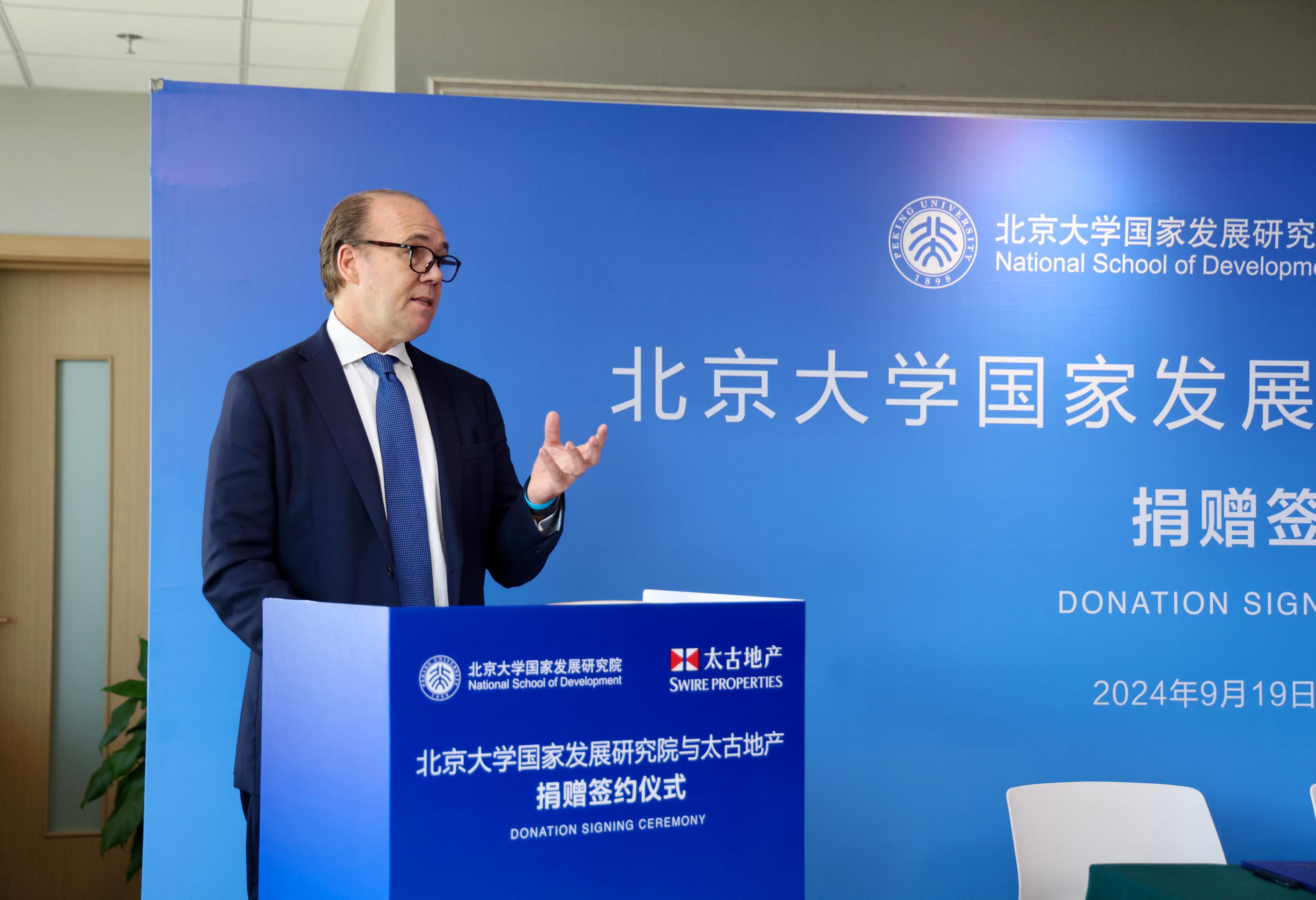 2024年9月19日上午,北京大學(xué)國(guó)家發(fā)展研究院與太古地產(chǎn)在承澤園333會(huì)議室舉行捐贈(zèng)簽約儀式。太古地產(chǎn)將捐贈(zèng)資金用于北京大學(xué)國(guó)家發(fā)展研究院基礎(chǔ)設(shè)施的改善。