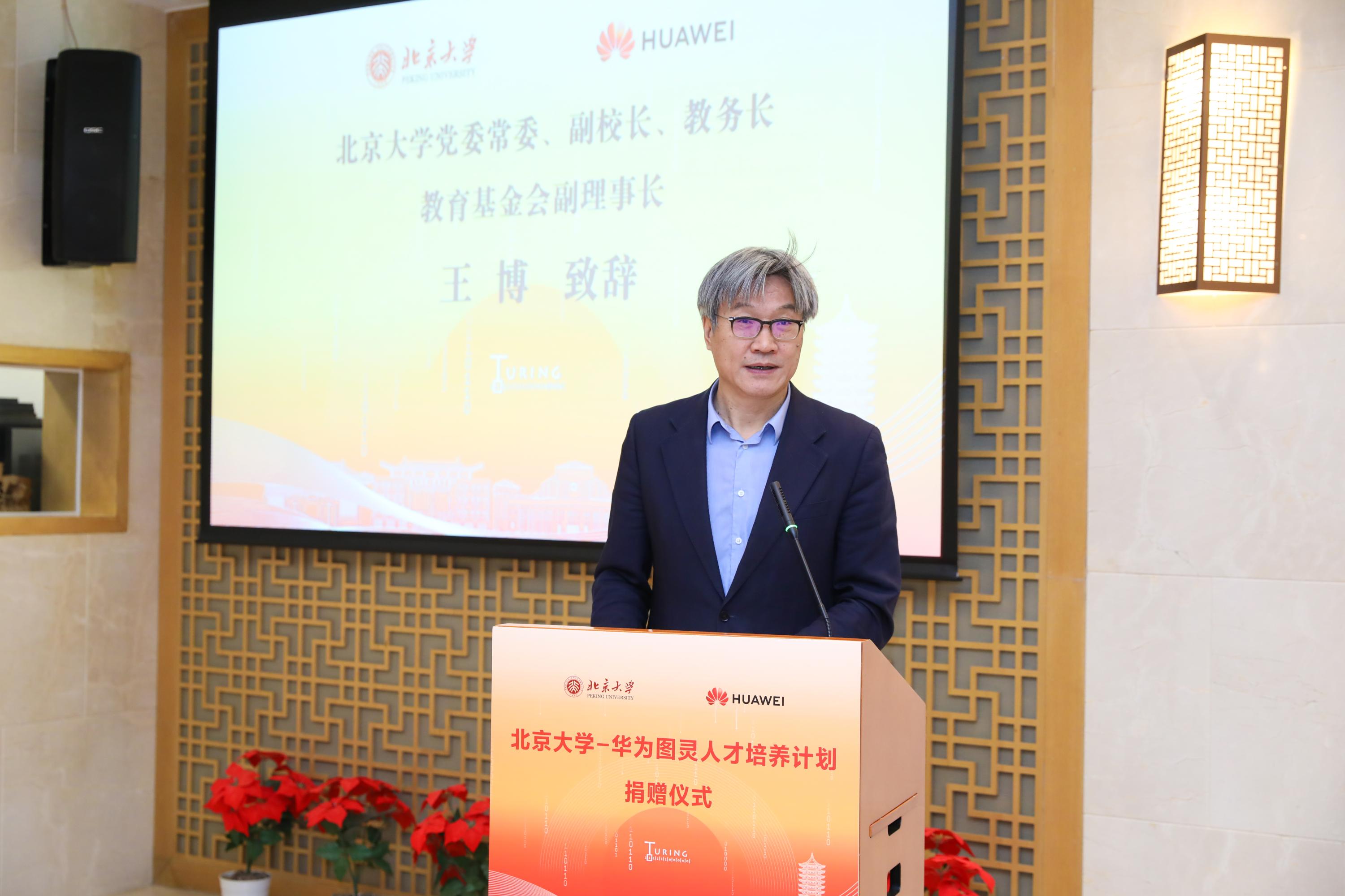 王博代表學(xué)校對華為的支持表示感謝。他指出,北京大學(xué)始終秉持開放辦學(xué)理念,致力于構(gòu)建產(chǎn)學(xué)研融合的育人生態(tài),讓學(xué)生在多元環(huán)境中自主成長。目前,學(xué)校已形成完善的本碩博人才培養(yǎng)體系,特別是在計算機(jī)和人工智能領(lǐng)域匯聚了一批優(yōu)秀師資和杰出學(xué)子。他強(qiáng)調(diào),與華為這樣的領(lǐng)軍企業(yè)并肩前行,既能拓展學(xué)生視野,又能促進(jìn)產(chǎn)學(xué)研協(xié)同創(chuàng)新。期待未來雙方能夠共同探索新形勢下拔尖創(chuàng)新人才培養(yǎng)新模式,為服務(wù)國家重大戰(zhàn)略需求做出新的貢獻(xiàn)。