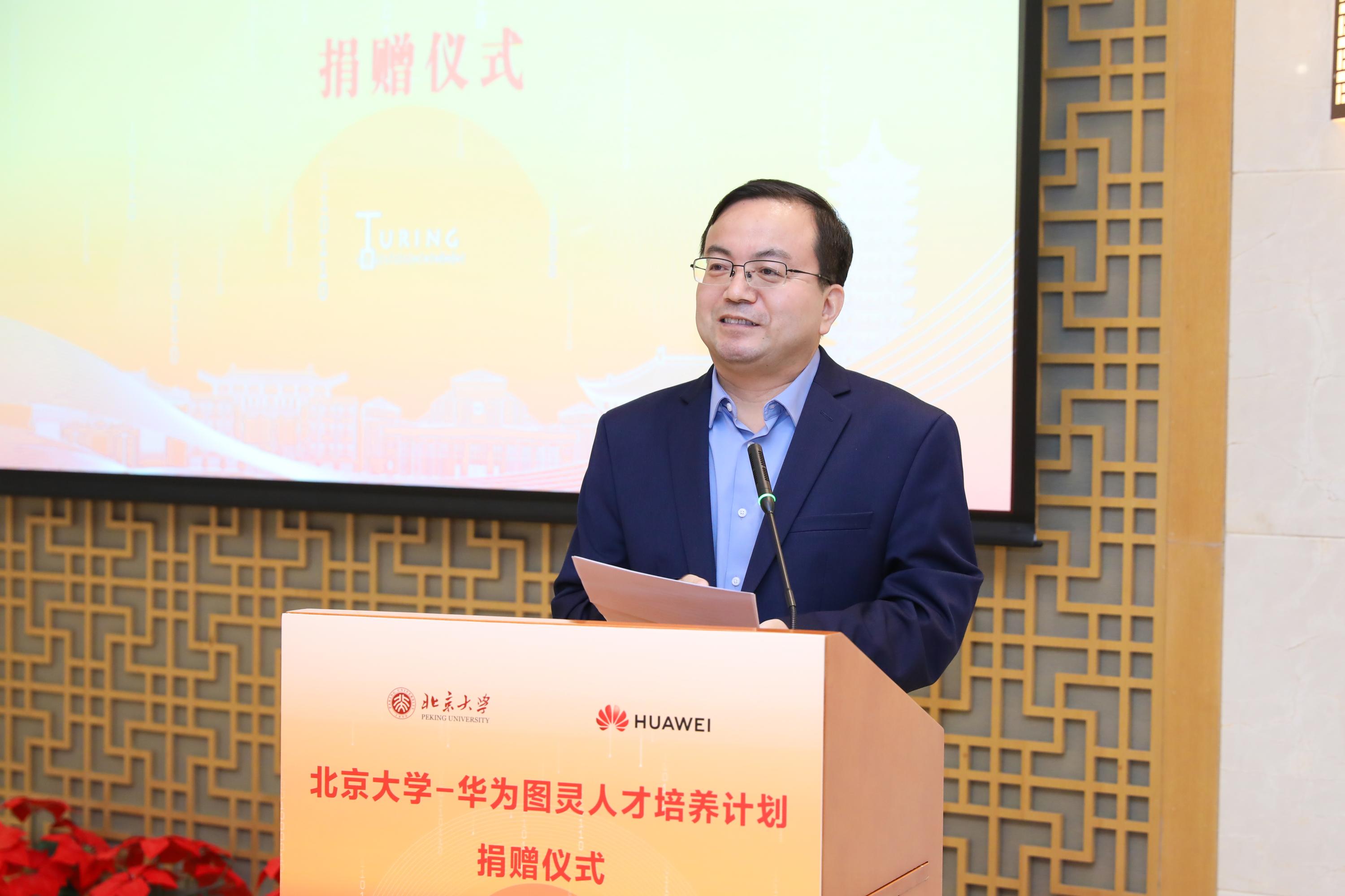 華為中央軟件院總裁謝桂磊、軟件Fellow 陳海波,北京研究所所長姜向中,中央軟件院歐拉部部長萬漢陽,中央軟件院高斯部部長李修昶,北京研究所人力資源部部長周菲,中央軟件院人力資源部部長趙章淳,中央軟件院編程語言實驗室主任馮新宇,中央軟件院OS內(nèi)核實驗室主任賈寧,與北京大學(xué)副校長、教務(wù)長、教育基金會副理事長王博,教務(wù)部部長傅綏燕,教育基金會秘書長、校辦產(chǎn)業(yè)黨工委書記兼管委會辦公室主任李宇寧,計算機(jī)學(xué)院院長胡振江,信息科學(xué)技術(shù)學(xué)院院長侯士敏,研究生院培養(yǎng)辦公室副主任瞿毅臻,圖靈班師生代表等共同出席。北京大學(xué)計算機(jī)學(xué)院副院長郭耀主持儀式。