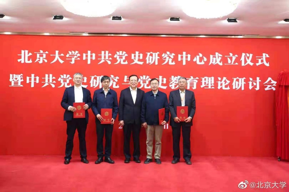 2021年5月4日下午,北京大學(xué)中共黨史研究中心成立儀式暨中共黨史研究與黨史教育理論研討會(huì)在北京大學(xué)英杰交流中心舉行。北京大學(xué)黨委書記邱水平,校長郝平,副校長王博,校長助理、秘書長孫慶偉,校內(nèi)相關(guān)院系、職能部門負(fù)責(zé)人以及師生代表共一百余人參加。成立儀式由王博主持。