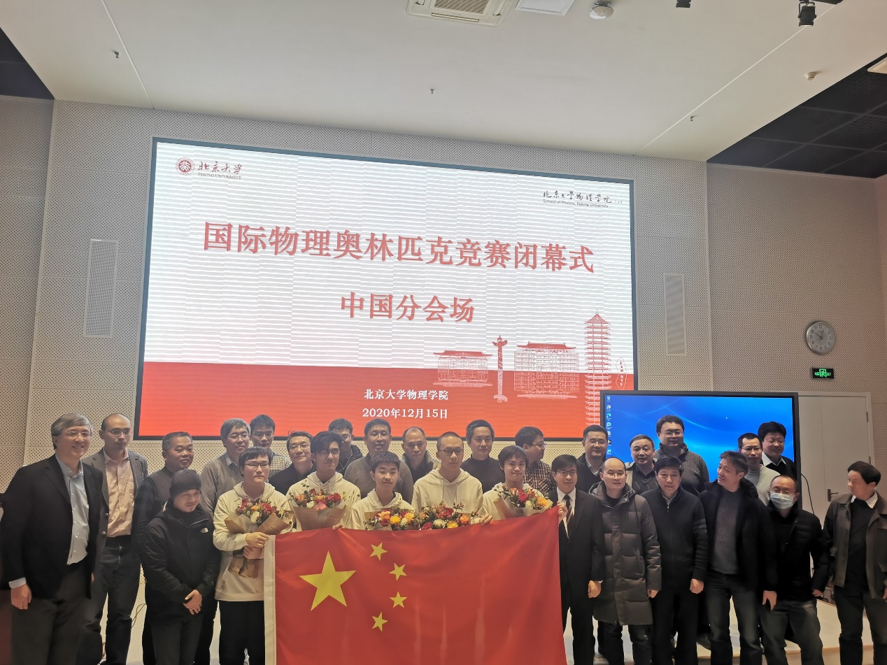 北京時(shí)間2020年12月15日晚,2020年度國(guó)際物理奧林匹克競(jìng)賽(International Distributed Physics Olympiad, IdPhO2020)閉幕。中國(guó)代表隊(duì)的五位選手張意飛、孫睿、李世昌、韓永琰和歐陽霄宇全部以高于金牌分?jǐn)?shù)線50%以上的突出成績(jī)奪得金牌并包攬前五名;張意飛更以超優(yōu)異表現(xiàn)勇奪最佳總成績(jī)獎(jiǎng)、最佳理論獎(jiǎng)、最佳實(shí)驗(yàn)獎(jiǎng)。北京大學(xué)物理學(xué)院穆良柱、荀坤副教授擔(dān)任中國(guó)隊(duì)領(lǐng)隊(duì),陳曉林、李智、陳志堅(jiān)教授出任觀察員。