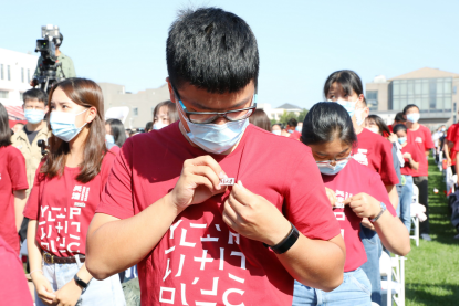 新生佩戴北大校徽