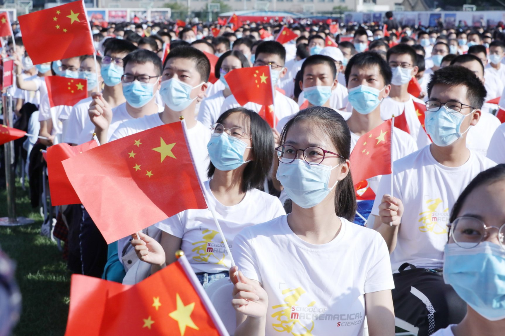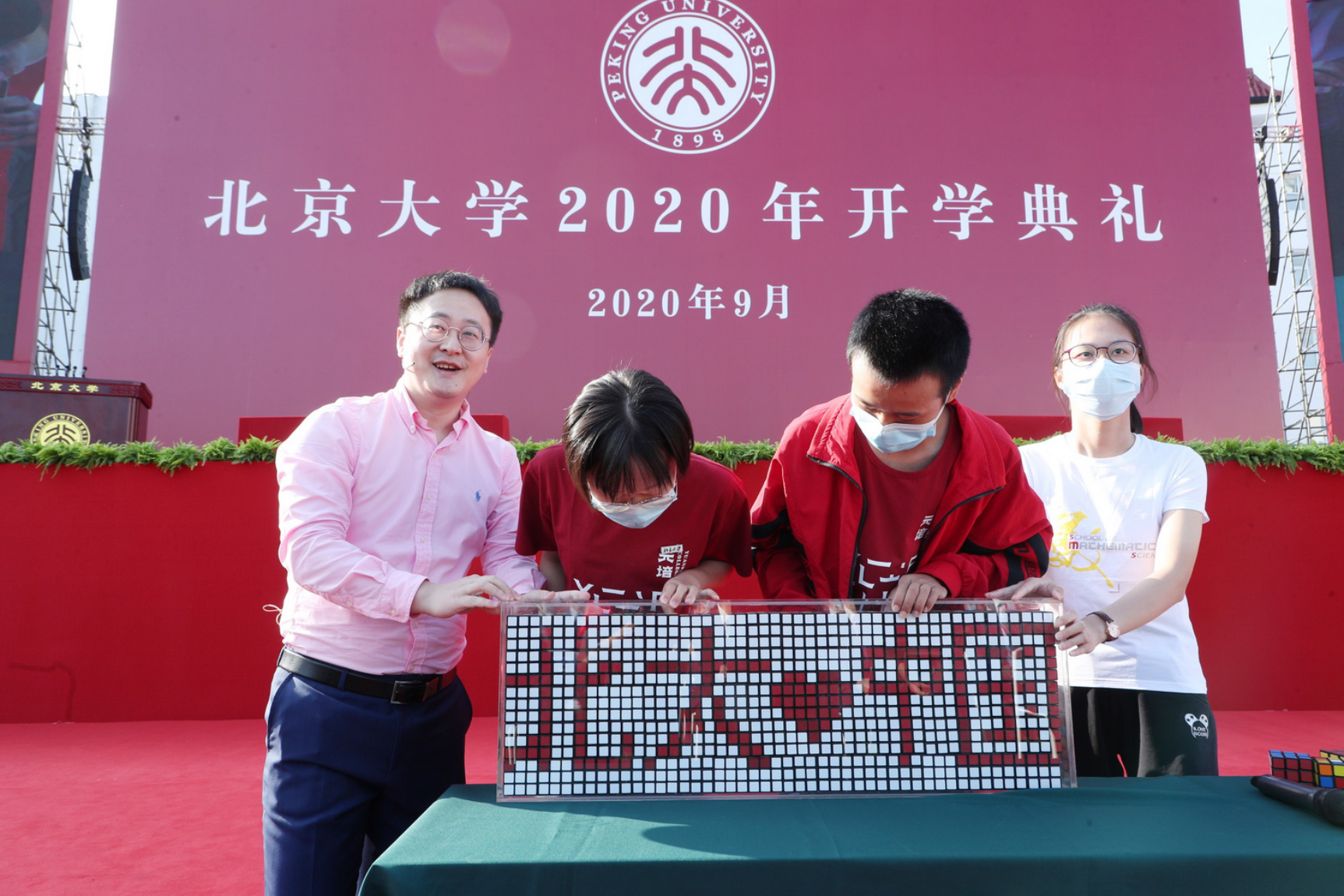 全體起立、奏唱國歌,升旗儀式之后,北京大學2020年開學典禮正式開始。
