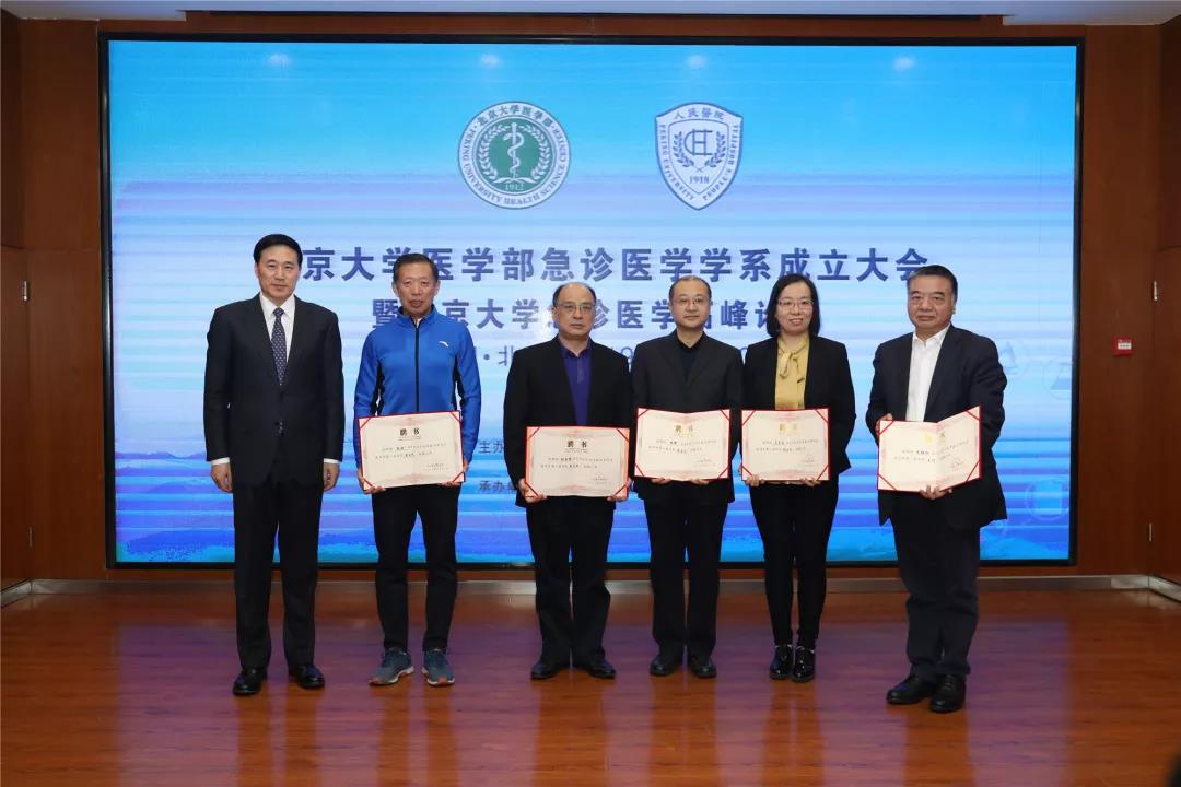 劉玉村為學系成員頒發(fā)聘書。朱繼紅教授任北京大學醫(yī)學院急診醫(yī)學學系主任,馬青變教授、熊輝教授、張國強教授、趙斌教授、張新超教授任副主任。