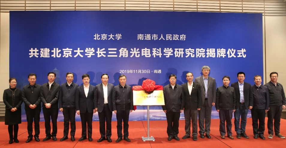 2019年11月30日下午,北京大學(xué)長(zhǎng)三角光電科學(xué)研究院揭牌儀式在南通國(guó)際會(huì)議中心舉行。北京大學(xué)黨委書記邱水平,黨委常委、副校長(zhǎng)、教務(wù)長(zhǎng)龔旗煌,物理學(xué)院院長(zhǎng)高原寧,南通市委書記、市人大常委會(huì)主任陸志鵬,南通市委副書記、市長(zhǎng)徐惠民出席。揭牌儀式由徐惠民主持。