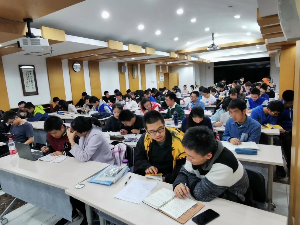 在張峻梓、郭心舟等數(shù)院青協(xié)歷屆秘書長的努力下,“一對一”結對子的形式也逐漸被推廣開來。來自數(shù)院的志愿者和需要答疑的同學們一幫一,有時候一講就是一上午,一站就是一整天。“數(shù)院同學有一種‘好為人師’的風氣,我們并不端架子,而是‘以數(shù)學會友’。在幫助同學解答問題的同時,自身也能夠查漏補缺,互相促進。雖然輔導會占據(jù)自己復習的時間,但同時也能督促我們提高學習效率。”