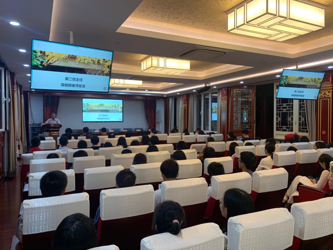 中國語言文學(xué)系2019級本科生第二班主任,北京大學(xué)黨委常委、宣傳部部長蔣朗朗作動員講話,他勉勵大家“不必太著急,學(xué)會沉下來”“立志要趁早,規(guī)劃要及時”“不忘初心、牢記使命”。法學(xué)院、數(shù)學(xué)科學(xué)學(xué)院動員會以慶祝新中國成立70周年重大活動為契機(jī),講述了北大師生參與群眾游行、志愿服務(wù)、合唱聯(lián)歡活動的感人瞬間,鼓勵參與“一二·九”歌會的同學(xué)在歌會中傳承北大人的家國情懷。國際關(guān)系學(xué)院創(chuàng)新形式,通過“秋林KTV”召開動員會,學(xué)院院長唐士其、黨委副書記祝詣博及任課教師傾情獻(xiàn)唱,用歌聲點(diǎn)燃學(xué)院師生的參與熱情。