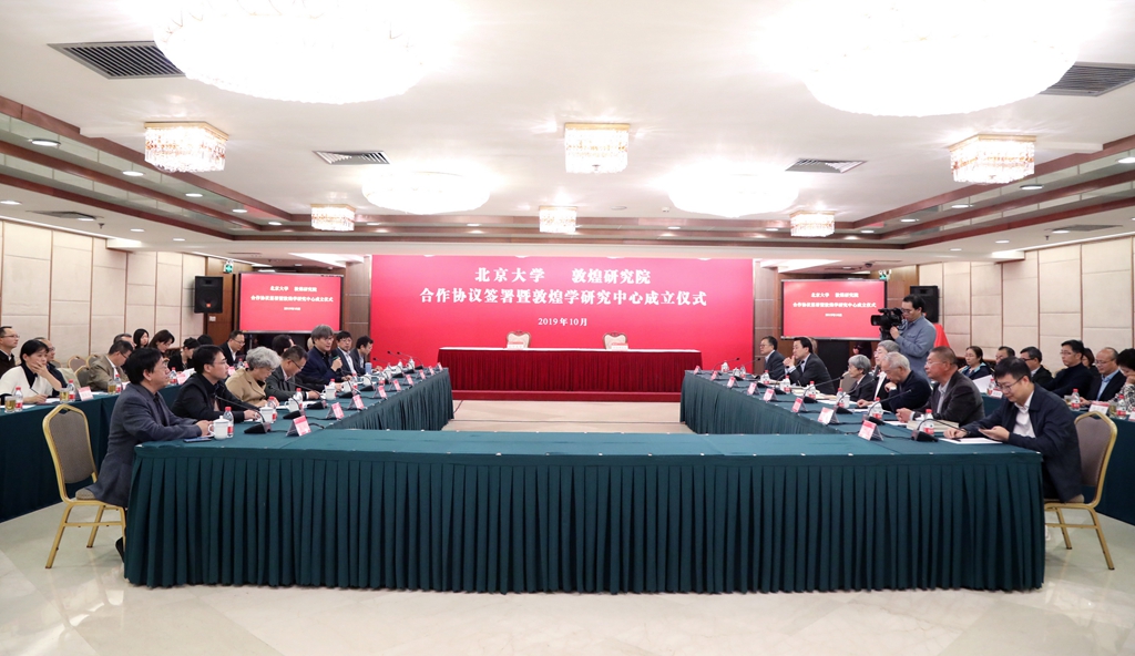 郝平、王博、張平文、樊錦詩、趙聲良、柴劍虹、郝春文、張先堂、北大外國語學(xué)院教授王邦維、段晴、榮新江、北大考古文博學(xué)院院長孫慶偉、北大藝術(shù)學(xué)院院長彭鋒、北大哲學(xué)系黨委書記束鴻俊、北大歷史學(xué)系系主任張帆、北大社會科學(xué)部部長龔六堂共同為敦煌學(xué)研究中心揭牌,標(biāo)志著敦煌學(xué)研究中心正式成立。