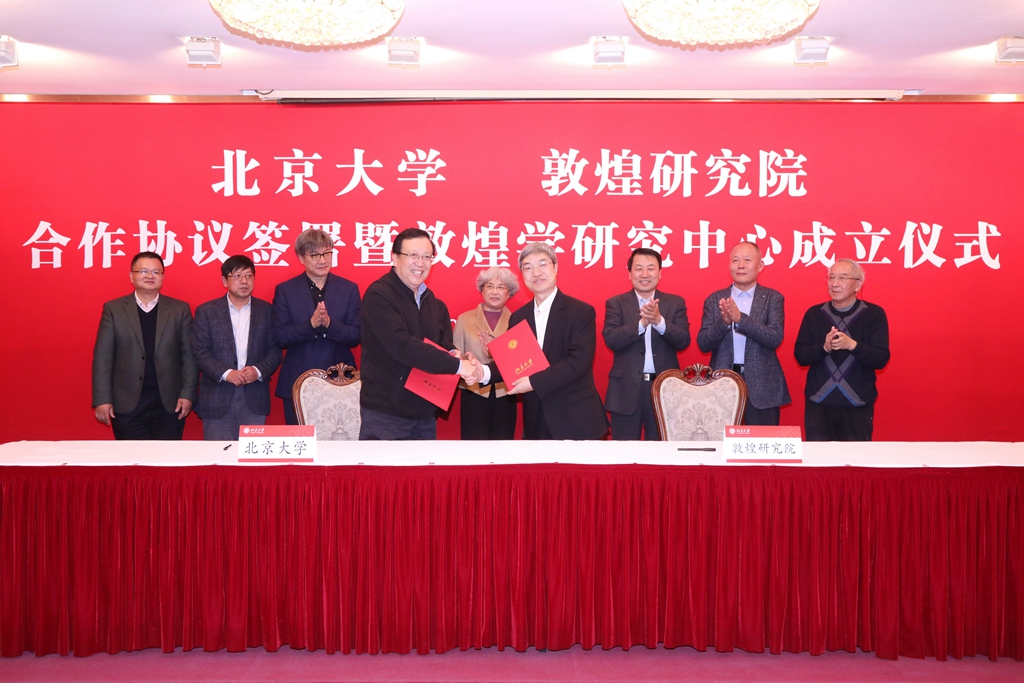10月23日下午,北京大學(xué)與敦煌研究院合作協(xié)議簽署暨敦煌學(xué)研究中心成立儀式在英杰交流中心月光廳舉行。北京大學(xué)校長郝平,北大校友、敦煌研究院名譽(yù)院長樊錦詩,敦煌研究院院長趙聲良,中華書局編審、中國敦煌吐魯番學(xué)會顧問柴劍虹,首都師范大學(xué)教授、中國敦煌吐魯番學(xué)會會長郝春文,各兄弟院校和北大相關(guān)職能部門、院系負(fù)責(zé)人參加成立儀式。儀式由北京大學(xué)副校長王博主持。