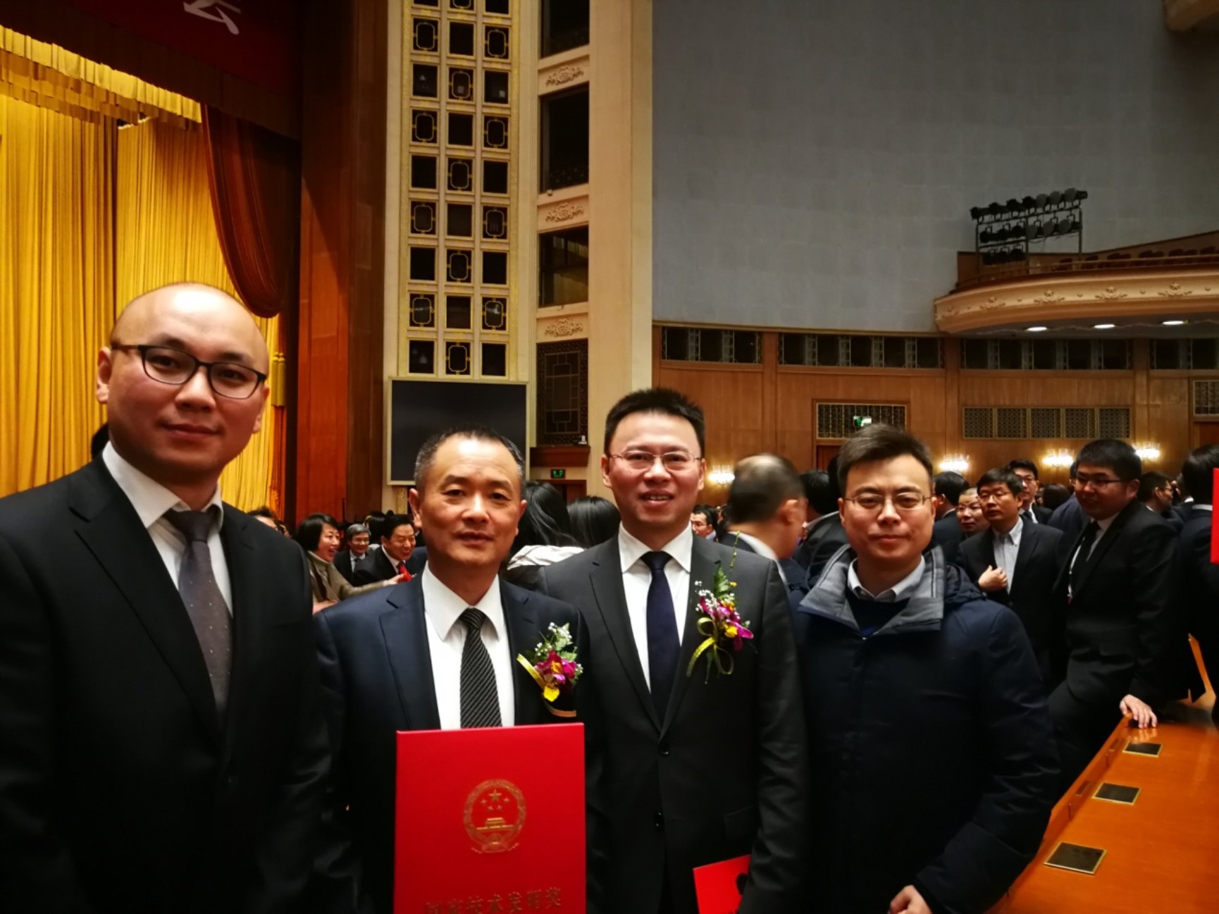 北京大學(xué)梅宏團(tuán)隊(duì)的“云-端融合系統(tǒng)的資源反射機(jī)制及高效互操作技術(shù)”獲得2018年國(guó)家技術(shù)發(fā)明一等獎(jiǎng),圖為團(tuán)隊(duì)成員在頒獎(jiǎng)儀式后合影
