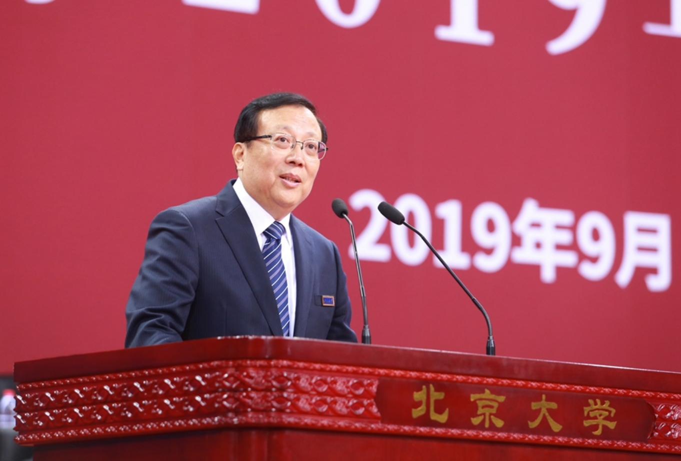 郝平代表全校師生員工,向各位新同學(xué)表示歡迎和祝賀。他指出,一百多年來(lái),北大始終秉承“思想自由、兼容并包”的學(xué)術(shù)傳統(tǒng),弘揚(yáng)“愛(ài)國(guó)、進(jìn)步、民主、科學(xué)”的五四精神,同人民一起開(kāi)拓、同祖國(guó)一起奮進(jìn)。古與今、中與西、文與理、道與術(shù)、人與物在這里交融輝映,匯聚成獨(dú)特的精神魅力。