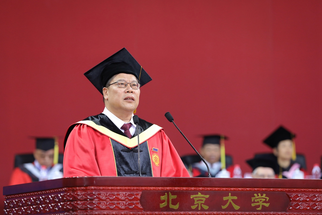 奏唱國歌后,邱水平致辭并宣讀了優(yōu)秀畢業(yè)生表彰決定,授予523名本科生2019年“北京大學優(yōu)秀畢業(yè)生”榮譽稱號,推薦178名本科生為2019年“北京市普通高等學校優(yōu)秀畢業(yè)生”。