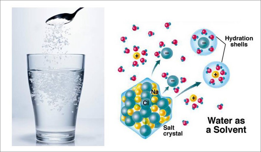 水分子使氯化鈉(NaCl)溶解形成離子水合物