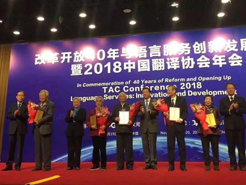 2018年11月19日上午,改革開放40周年與語言服務(wù)創(chuàng)新發(fā)展論壇暨2018中國翻譯協(xié)會年會在北京舉行。仲躋昆先生獲得了代表我國翻譯界最高榮譽的“翻譯文化終身成就獎”。此前,北京大學的季羨林先生、許淵沖先生都曾獲得過該獎項。