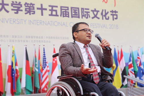 10月21日,北京大學(xué)第十五屆國際文化節(jié)在百周年紀(jì)念講堂廣場開幕。這次活動是學(xué)校一百二十周年校慶系列活動之一,主題為“北大因你、百廿又新”,來自60多個(gè)國家和地區(qū)的數(shù)千名學(xué)生參加了本屆國際文化節(jié)。教育部留學(xué)服務(wù)中心、孔子學(xué)院總部/國家漢辦、中國教育國際交流協(xié)會、北京市教委、中央美術(shù)學(xué)院等機(jī)構(gòu)、院校的領(lǐng)導(dǎo)和代表,尼泊爾、巴勒斯坦、阿富汗、伊朗、保加利亞、幾內(nèi)亞比紹、突尼斯等10多個(gè)國家的外國使節(jié),以及北京大學(xué)校長林建華、校友代表和師生代表出席了開幕式。
