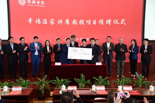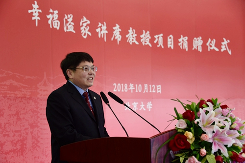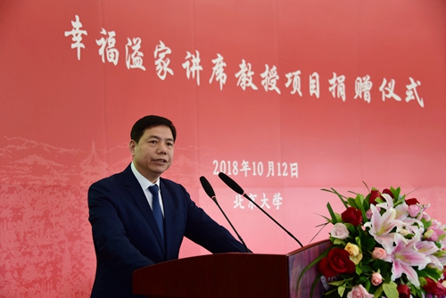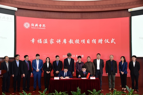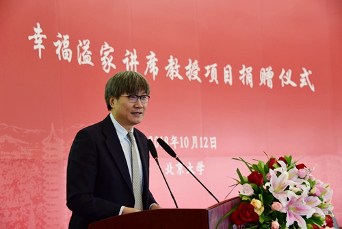 10月12日上午,北京大學(xué)經(jīng)濟(jì)學(xué)院“幸福溢家講席教授”項(xiàng)目捐贈(zèng)儀式在北大經(jīng)濟(jì)學(xué)院東旭學(xué)術(shù)報(bào)告廳舉行。該項(xiàng)目由中油溢家集團(tuán)董事長(zhǎng)、幸福溢家(北京)企業(yè)管理有限公司董事長(zhǎng)胡伯溢捐資2000萬(wàn)元人民幣設(shè)立,用于支持北大經(jīng)濟(jì)學(xué)院的師資隊(duì)伍建設(shè)。儀式由經(jīng)濟(jì)學(xué)院副院長(zhǎng)張亞光主持。