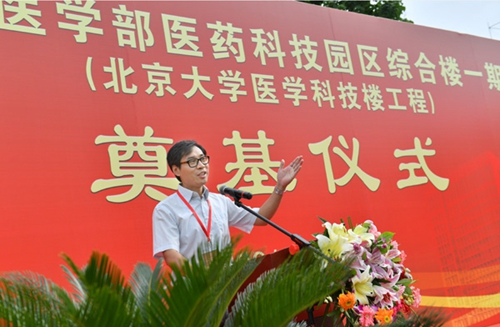 林建華在致辭中指出,醫(yī)藥科技園區(qū)綜合樓不僅是醫(yī)學(xué)部全體師生員工翹首以盼的喜事,也是北京大學(xué)整體規(guī)劃發(fā)展的重要節(jié)點(diǎn)。“北大醫(yī)學(xué)”有著廣闊的發(fā)展空間和良好的發(fā)展前景,希望廣大北大醫(yī)學(xué)人瞄準(zhǔn)未來(lái)醫(yī)學(xué)發(fā)展前沿,做好宏觀規(guī)劃和頂層設(shè)計(jì),注重學(xué)科的交叉整合與協(xié)同創(chuàng)新。學(xué)校將在資源配置、人才聘任、學(xué)科布局、機(jī)構(gòu)設(shè)置、資金投入等方面給予醫(yī)學(xué)部大力支持,與全體師生員工一起,努力把醫(yī)學(xué)部建設(shè)成為醫(yī)藥衛(wèi)生高層次人才培養(yǎng)、高水平科技創(chuàng)新、高質(zhì)量醫(yī)療服務(wù)的世界一流醫(yī)學(xué)中心。