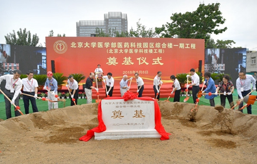 6月8日早上8點(diǎn),陽(yáng)光和煦,微風(fēng)宜人,備受矚目的北京大學(xué)醫(yī)學(xué)部醫(yī)藥科技園區(qū)綜合樓一期工程(北京大學(xué)醫(yī)學(xué)科技樓工程)在師生共同見證下舉行了奠基儀式。