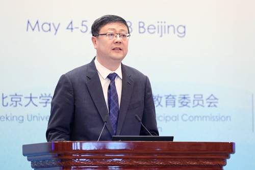 2018年5月4日下午,由中華人民共和國教育部指導(dǎo),北京大學(xué)、北京市教育委員會和韓國高等教育財(cái)團(tuán)主辦的“雙一流”建設(shè)國際研討會暨北京論壇(2018)于釣魚臺國賓館隆重開幕。本次研討會以北京大學(xué)120周年校慶為契機(jī),來自44個國家和地區(qū)的261所高校代表出席,包括劍橋大學(xué)、牛津大學(xué)、莫斯科國立大學(xué)、柏林自由大學(xué)、哈佛大學(xué)、耶魯大學(xué)、斯坦福大學(xué)、芝加哥大學(xué)、澳大利亞國立大學(xué)、新加坡國立大學(xué)、東京大學(xué)、北京大學(xué)、清華大學(xué)、復(fù)旦大學(xué)、上海交通大學(xué)等多所海內(nèi)外知名大學(xué)校長及世界知名學(xué)者,近800人齊聚一堂,以“變與不變——120年來全球大學(xué)與世界文明”為題,攜手共議當(dāng)代高等教育改革與世界文明發(fā)展的未來趨向。中國國務(wù)院副總理孫春蘭,教育部部長陳寶生,北京市市長陳吉寧,北京大學(xué)黨委書記郝平、校長林建華等出席開幕式。開幕式由林建華主持。