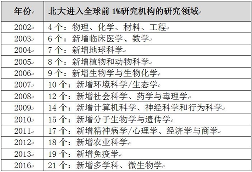 北京大學(xué)進(jìn)入ESI全球前1%研究機(jī)構(gòu)的研究領(lǐng)域