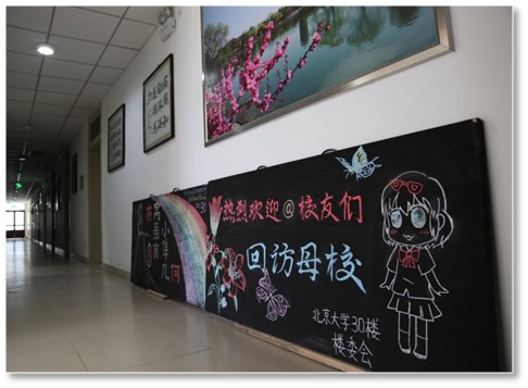 走進(jìn)30號學(xué)生宿舍樓,一股溫馨雅致的家庭氣息撲面而來。門廳里,展板、信息墻、鐘表、信報柜、信息顯示屏一應(yīng)俱全,供同學(xué)們小憩休閑的桌椅、供分享和閱讀的書柜及書籍、用來熱飯熱菜的微波爐井井有條。走進(jìn)樓道,精致的板報、美麗的風(fēng)景畫、師生書法作品……讓人感受到濃濃的文化氛圍。