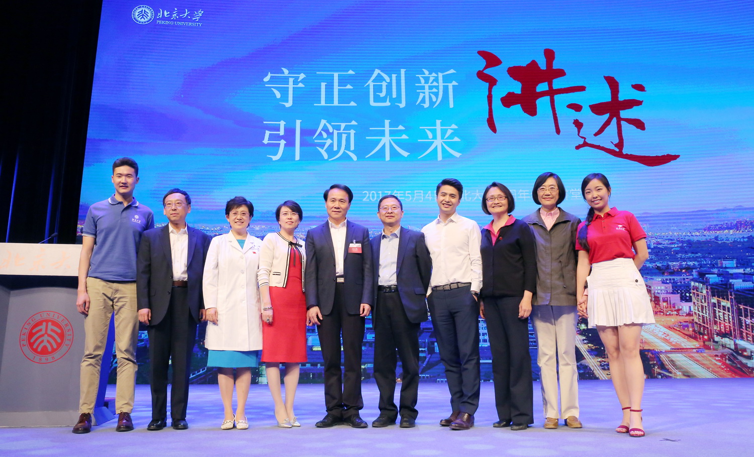 2017年5月4日是北京大學(xué)建校119周年校慶日。當(dāng)天下午,“守正創(chuàng)新,引領(lǐng)未來(lái):講述——北京大學(xué)建校119周年‘雙一流’建設(shè)推進(jìn)會(huì)”在百周年紀(jì)念講堂舉行。全國(guó)政協(xié)副主席、中國(guó)宋慶齡基金會(huì)主席王家瑞,全國(guó)人大常委會(huì)原副委員長(zhǎng)彭珮云,全國(guó)政協(xié)外事委員會(huì)副主任蔡武,教育部副部長(zhǎng)林蕙青,國(guó)家民族事務(wù)委員會(huì)原專(zhuān)職委員管培俊,北京市海淀區(qū)區(qū)長(zhǎng)于軍,北京市教委副主任葉茂林等領(lǐng)導(dǎo)出席交流會(huì)。北京大學(xué)黨委書(shū)記郝平、校長(zhǎng)林建華等學(xué)校領(lǐng)導(dǎo)班子成員及學(xué)校老領(lǐng)導(dǎo),全國(guó)重點(diǎn)中學(xué)校長(zhǎng)代表,北大師生、校友、北大附中學(xué)生代表和關(guān)心學(xué)校建設(shè)發(fā)展的各界人士共2000余人參加了交流會(huì)。交流會(huì)由北京大學(xué)外國(guó)語(yǔ)學(xué)院法語(yǔ)系主任董強(qiáng)教授主持。