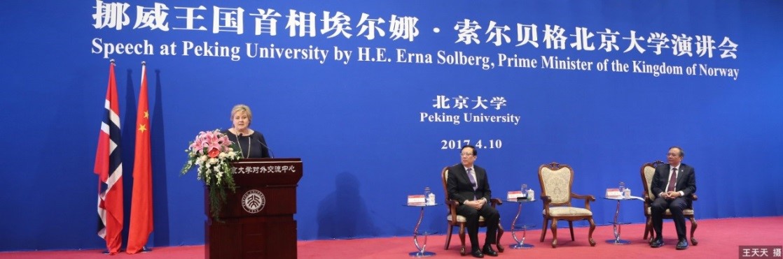 挪威首相埃爾娜·索爾貝格訪問北京大學(xué)并發(fā)表演講