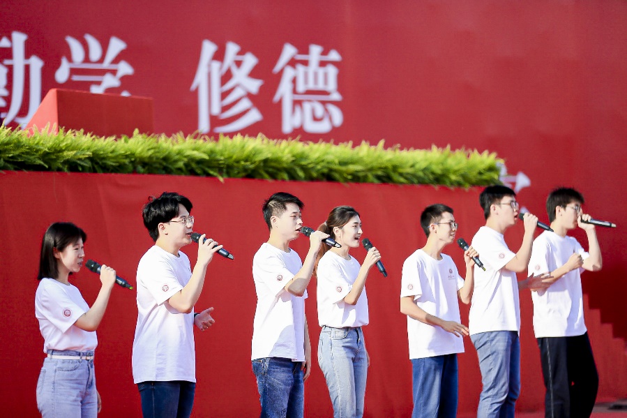 開(kāi)學(xué)典禮當(dāng)天正值第37個(gè)教師節(jié),新生代表向教師代表獻(xiàn)花,對(duì)老師們的默默耕耘和悉心教導(dǎo)表示感謝。