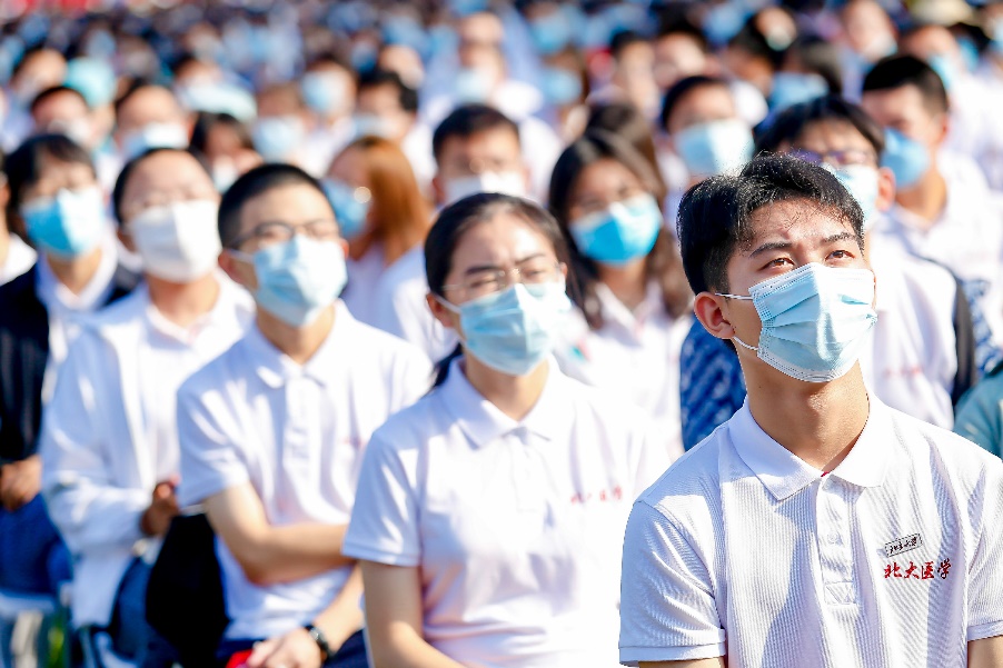 9月10日上午,北京大學(xué)2021年開(kāi)學(xué)典禮舉行。來(lái)自五湖四海的新生匯聚在五四體育場(chǎng),一張張青春的笑顏明媚了燕園的秋日。