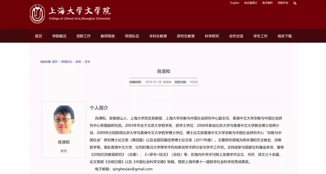上海大學(xué)文學(xué)院官網(wǎng)顯示,肖清和現(xiàn)為上海大學(xué)歷史系教授(正高),也是上海大學(xué)宗教與中國社會(huì)研究中心副主任。