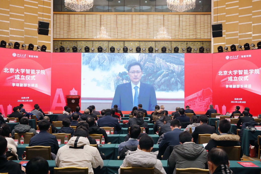 黃如代表學(xué)校宣讀《關(guān)于成立北京大學(xué)智能學(xué)院的通知》(校發(fā)[2021]210號(hào)文件),正式宣布北京大學(xué)智能學(xué)院成立。