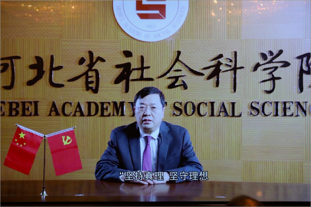 黃一兵指出,在中國(guó)共產(chǎn)黨成立100周年之際,在全黨學(xué)習(xí)黨的歷史、深入學(xué)習(xí)貫徹黨的十九屆六中全會(huì)精神的熱潮中,緬懷李大釗同志的不朽功勛和崇高品德,學(xué)習(xí)和感悟他對(duì)信仰矢志不移,對(duì)理想英勇獻(xiàn)身的初心品質(zhì),對(duì)發(fā)揚(yáng)紅色傳統(tǒng)、傳承紅色基因、賡續(xù)共產(chǎn)黨人基因血脈、始終保持革命者的大無(wú)畏斗爭(zhēng)精神、鼓起邁進(jìn)新征程奮進(jìn)新時(shí)代的精氣神具有十分重要的意義。他從李大釗同志是偉大思想的傳播者、復(fù)興偉業(yè)的倡行者、百年大黨的奠基者、偉大建黨精神的締造者四個(gè)方面深入闡述了李大釗同志的歷史貢獻(xiàn)。