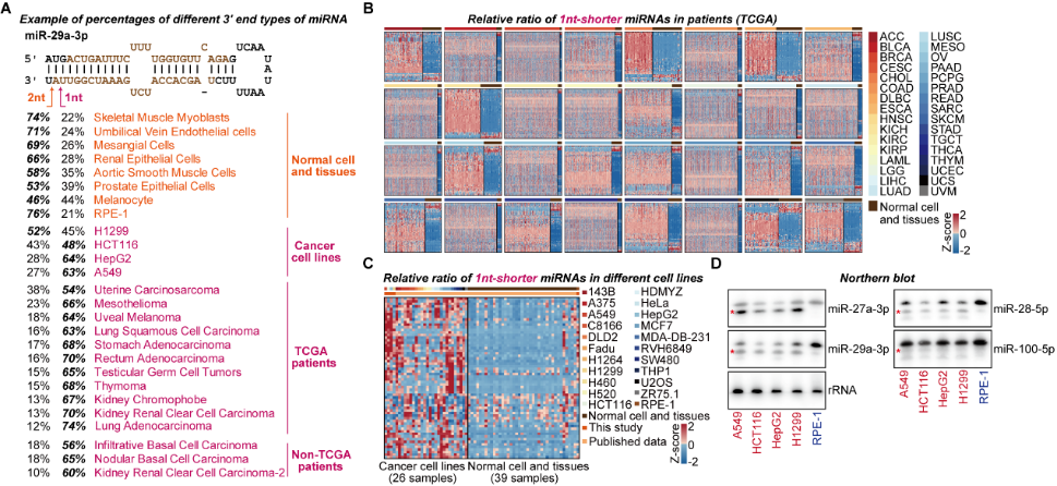 異常的3’末端短1-nt的miRNA異構(gòu)體在不同的人類腫瘤中廣泛積累