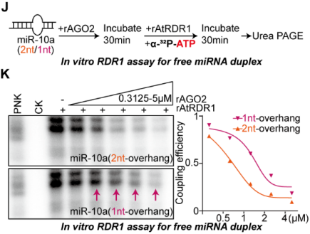 RDR1更傾向于識(shí)別游離的具有1-nt懸垂的miRNA雙鏈異構(gòu)體作為底物