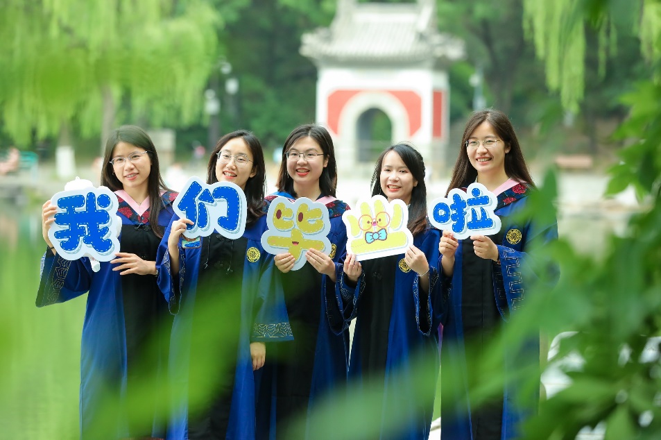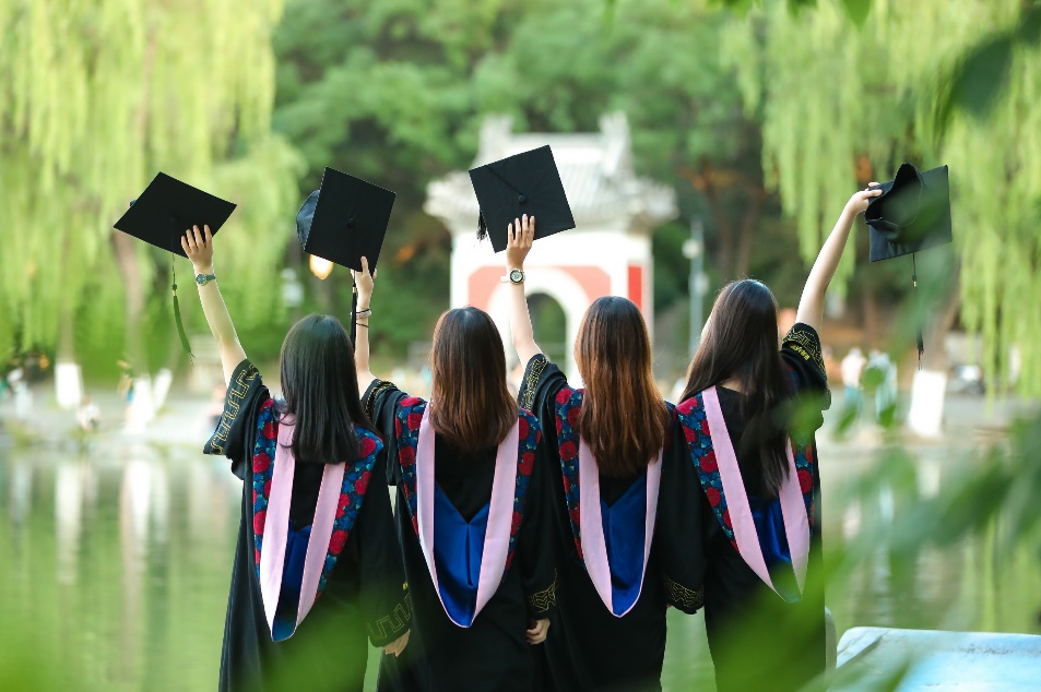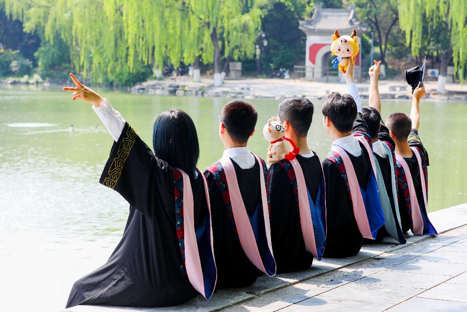 在這湖光塔影中漫步的,便是身著各色學(xué)位服的畢業(yè)生們了。